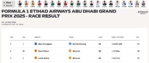 Norris, Abu Dabi’de Verstappen ve Piastri’nin arkasında podyuma çıkarak ilk F1 şampiyonluğunu elde etti.