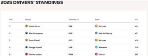 Sonuç olarak, Yas Marina Pisti’ndeki 10 puanlık fark göz önüne alındığında, Norris ve Verstappen Dünya Şampiyonası sıralamasında sadece iki puan farkla zirvedeydi. Piastri ise 11 puan gerideydi.
