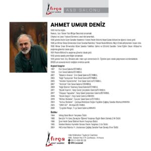 14’ncü kişisel sergisini açmaya hazırlanan Ahmet Umur Deniz, 1984-2024 yılları arasında geçen 40 yıllık süreçte birçok ödül alan başarılı bir ressam olarak tanınıyor.