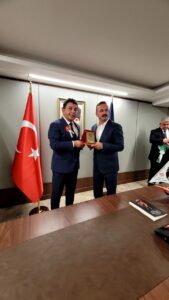 Ağıralioğlu’na Tuncay Gençer tarafından plaket, Burhan Akdoğan tarafından el yapımı gemi maketi ve heyet üyelerince yöresel bazı hediyeler takdim edildi.