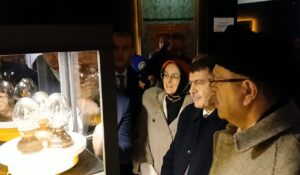 Protokol üyeleri konuşmaların ardından sergiyi gezerek mukaddes emanetler hakkında detaylı bilgi aldılar.
