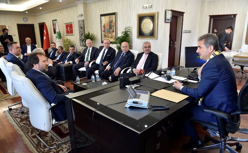 MKE Ankaragücü Kulübü Başkanı Mehmet Yiğiner, ANKESOB; ve Ankara Şoförler Odası yönetim kurulu üyeleri ile birlikte Mamak Belediye Başkanı Murat Köse’ye hayırlı olsun ziyaretinde bulundu. Ankaragücü’nün köklü bir kulüp olduğunu belirterek takıma başarı dileyen Köse, Ankaragücü’nün futbolcusundan teknik heyetine kadar birlik ve beraberlik içinde büyük başarılara imza atacaklarına inandıklarını kaydetti. Yerel yönetimlerin verdiği desteğin, çalışma azimlerini ve gayretlerini arttırdıklarını kaydeden Yiğiner de, futbolcuların imzaladığı 06 numaralı “Murat Köse” yazılı formayı Köse’ye takdim etti.