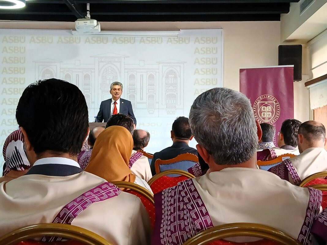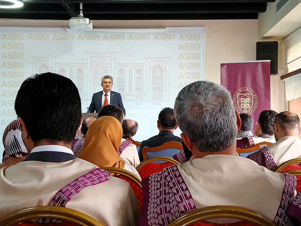 Programın açılışında konuşan ASBÜ Rektörü Prof. Dr. Musa Kazım Arıcan, ASBÜ’nün Türkiye’de sosyal bilimler temalı ilk devlet üniversitesi olduğunu ve kurulduğu günden bu yana bilimin rehberliğinde maneviyatın, tarihin ve kültürün ışığında ilerleyen bir yükseköğretim modelinin öncülüğünü yapmakta olduğunu belirterek, “Her ne kadar çok genç bir üniversite olsa da çok kısa zamanda önemli mesafeler kat etmiş 12 yıllık bir üniversite. ASBÜ modern Türkiye Cumhuriyetinin enderunu olma gayretindedir. Cumhuriyetimizin ikinci asrına adım atarken sayın cumhurbaşkanımızın ifade ettiği gibi Türkiye yüzyılına, Türk dünyasını tanıyan, yerli ve milli davranan, küresel düşünen insanlar yetiştirme vizyonuyla katkı sunmaktadır.” dedi.