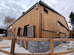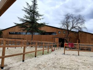 Tesis şu an bitmek üzere. Dersler başladı aslında, dışarıdan gelenlere ders veriyoruz. Binicilik eğitimi veriliyor, hem pony hem diğer atlarla. Totalde 25 ahırımız var. Dışarıdan gelen atlara pansiyon hizmeti veriyoruz. Hem maneji, hem padokları kullanabiliyorlar, keyifli bir yer. Onlara aynı zamanda restoranda keyifli bir ortam sunuyoruz.