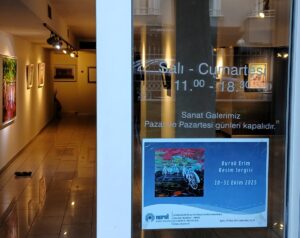 İki yıl önce Ziraat Bankası’nda, sonra da Bodrum Marina Yacht Club MerqezArt’da ve pek çok farklı mekânda sergiler açan Erim, aynı zamanda Nurol Sanat Galerisi bünyesinde üretim yapan bir sanatçı.