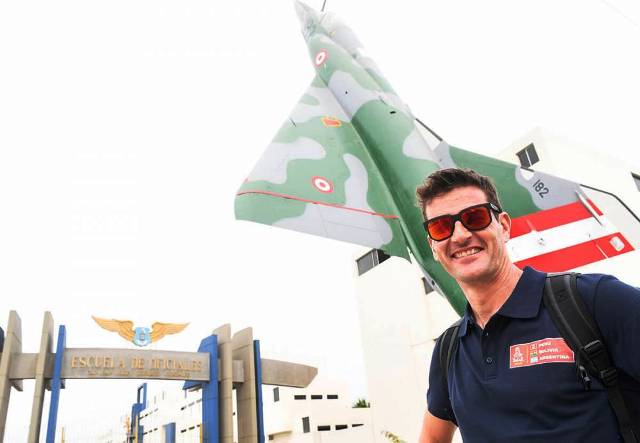 Yarışma hazırlıklarını Peru Hava Kuvvetlerinin Las Palmas Hava Üssünde tamamlayan sporcular üs nizamiyesinde yer alan Fransız Dassault Mirage 5 uçağı önünde poz vermeyi de ihmal etmediler. (Haberola-Necdet Gürsoy)