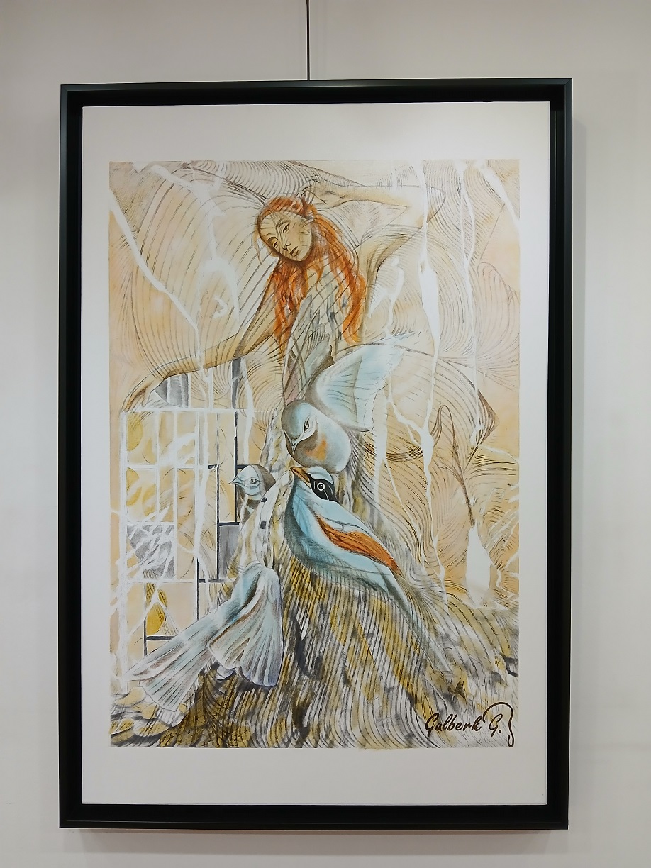 Soyut ve somut anlatımın iç içe geçtiği sergide Gülbahçe, farklı sanat akımlarını özgün bir yorumla bir araya getiriyor. Art Nouveau estetiği ile Rönesans etkilerini harmanlayan eserler, izleyiciyi hem görsel hem de düşünsel bir yolculuğa davet ediyor.