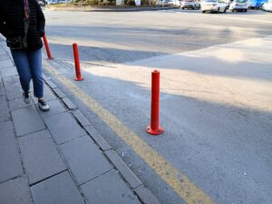 Ankara’nın kalabalık kavşaklarından biri olan Dikimevi’nde, dolmuş indirme bindirme noktasına yerleştirilen delinatörler kısa sürede işlevini yitirdi. Trafik düzenini sağlamak ve yolcu güvenliğini artırmak amacıyla konulan plastik ayırıcılar, dolmuş sürücülerinin manevraları sırasında ezilerek kullanılamaz hale geldi.