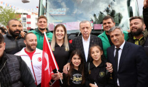 “Yaklaşık 3,5 yıllık bir aranın ardından, tekrar Balıkesir’de sizlerle yüz yüze hasret gidermenin memnuniyeti içindeyim” diyen Cumhurbaşkanı Erdoğan, şunları kaydetti: “Rabbim birliğimizi, beraberliğimizi, kardeşliğimizi, muhabbetimizi daim eylesin diyorum. Eskiler, ‘iki gönül bir olunca samanlık seyran olur’ diyor. Biz de milletimizle bir olduğumuzda, dünyanın yükü omuzlarımıza binse şikâyet etmiyoruz. Yedi düvel karşımıza dikilse de eyvallah etmiyoruz. Bilhassa da kuruluşun ve kurtuluşun şehri Balıkesir yanımızda olduğu müddetçe, Allah’ın izniyle aşamayacağımız engel, üstesinden gelemeyeceğimiz sıkıntı yoktur.”