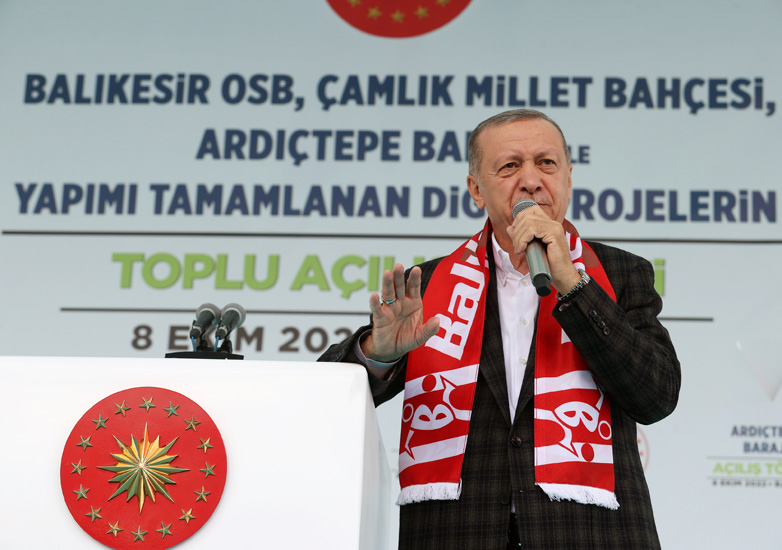 Cumhurbaşkanı Erdoğan, Balıkesir’de toplu açılış töreninde yaptığı konuşmada, “Kurduğumuz altyapı, aldığımız tedbirler, hayata geçirdiğimiz mekanizmalar sayesinde küresel krizlerin ülkemize etkilerini en alt düzeyde tutuyoruz” dedi.