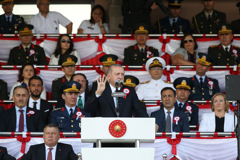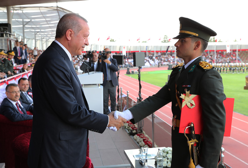 Kara, Deniz ve Hava Harp okullarında eğitim-öğretimlerini tamamlayan 146 Türk ve 78 misafir subayı tebrik eden Cumhurbaşkanı Erdoğan, yeniden yapılandırma sonrası harp okullarından ilk mezunlarının verildiğine işaret etti. Millî Savunma Üniversitesi’nin, önümüzdeki Ekim ayında, toplam 6 bin 125 Türk ve 22 ülkeden 661 misafir askerî öğrencisiyle, yeni eğitim-öğretim yılına başlayacağını belirten Cumhurbaşkanı Erdoğan, “Böylece, 15 Temmuz’un ardından başlayan yeniden yapılanma süreci büyük ölçüde tamamlanmış ve Harp okullarımız tam kapasiteyle faaliyetlerini yürütür hâle gelmiş olacaktır” dedi.