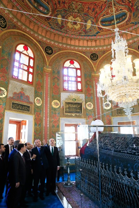 Açılışta yaptığı kısa konuşmasında türbenin yeniden ziyarete açılmasının hayırlı olması temennisinde bulunan ve emeği geçenlere teşekkür eden Cumhurbaşkanı Erdoğan, yapılan duaya iştirak etti.