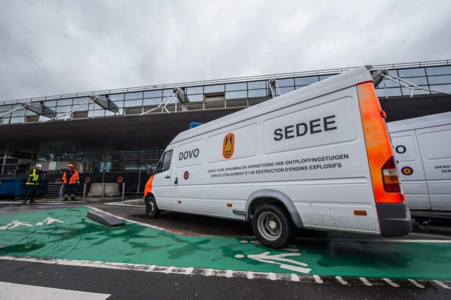 Bombanın bulunduğu yerin terminal binası ve yolcu işlemlerinin yapıldığı yere güvenli bir mesafede olduğunu tespit eden Belçika Ordusunun patlayıcı mühimmat imha birimi DOVO / SEDEE yaptığı incelemede bombanın herhangibir tehlikesi bulunmadığını doğrulasa da 100 metrelik bir güvenlik perdesi oluşturuldu.