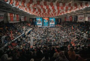 Anıtkabir ziyaretinin ardından kongre için Taha Akgül Spor Salonu’na geçildi. Gelenler salona sığmadı, binlerce insan yer kalmadığı için içeri alınamadı.