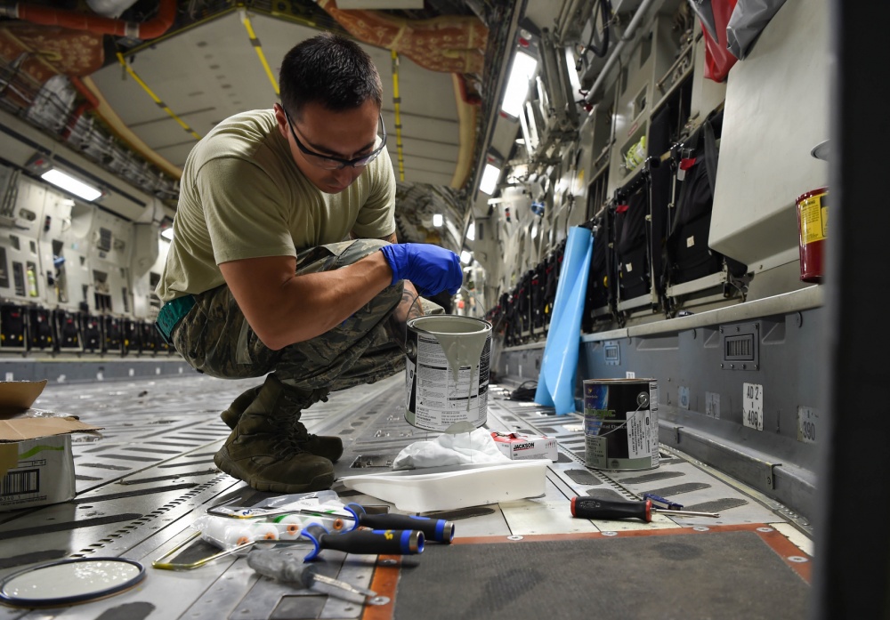 ABD Hava Kuvvetlerinin Kaliforniya, Travis Hava Kuvvetleri Üssündeki Boeing C-17 Globemaster III tipi uçağın iç ve dış kısımlarındaki metal yüzeylerin korozyona karşı korunması amacıyla boyanmasına karar verildi.