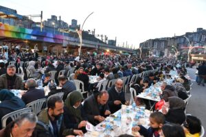 Salgınla birlikte ara verilen ve 2 yılın ardından kurulan 6 bin kişilik iftar sofrasında eller “birlik, beraberlik” için açıldı. Dualar edildi, iftar coşkusu Mamak’ı sardı.