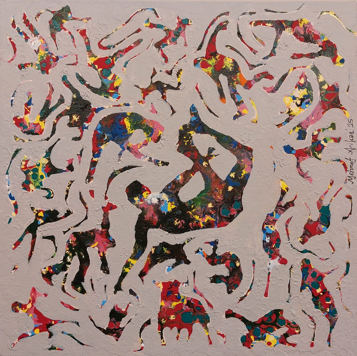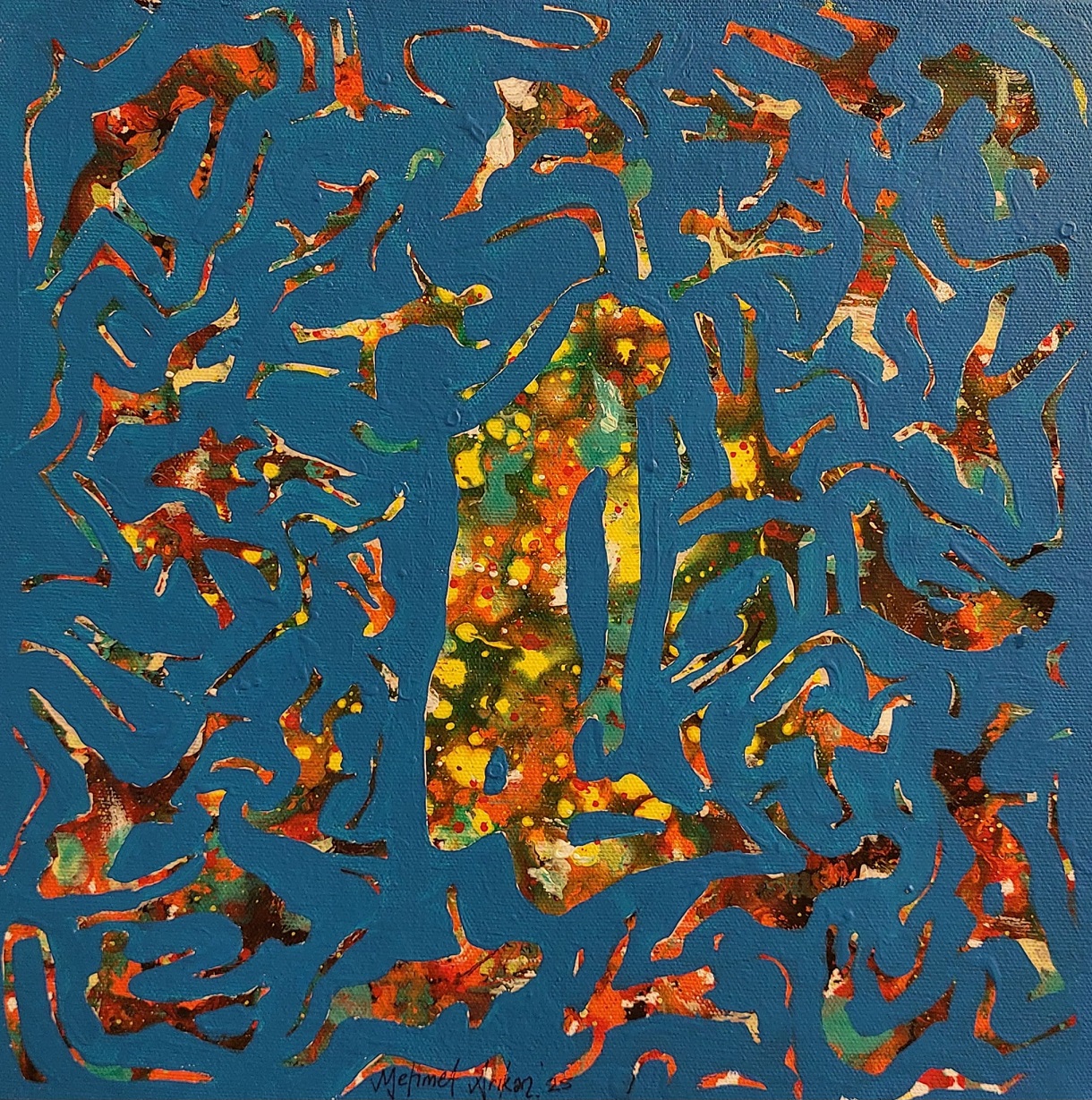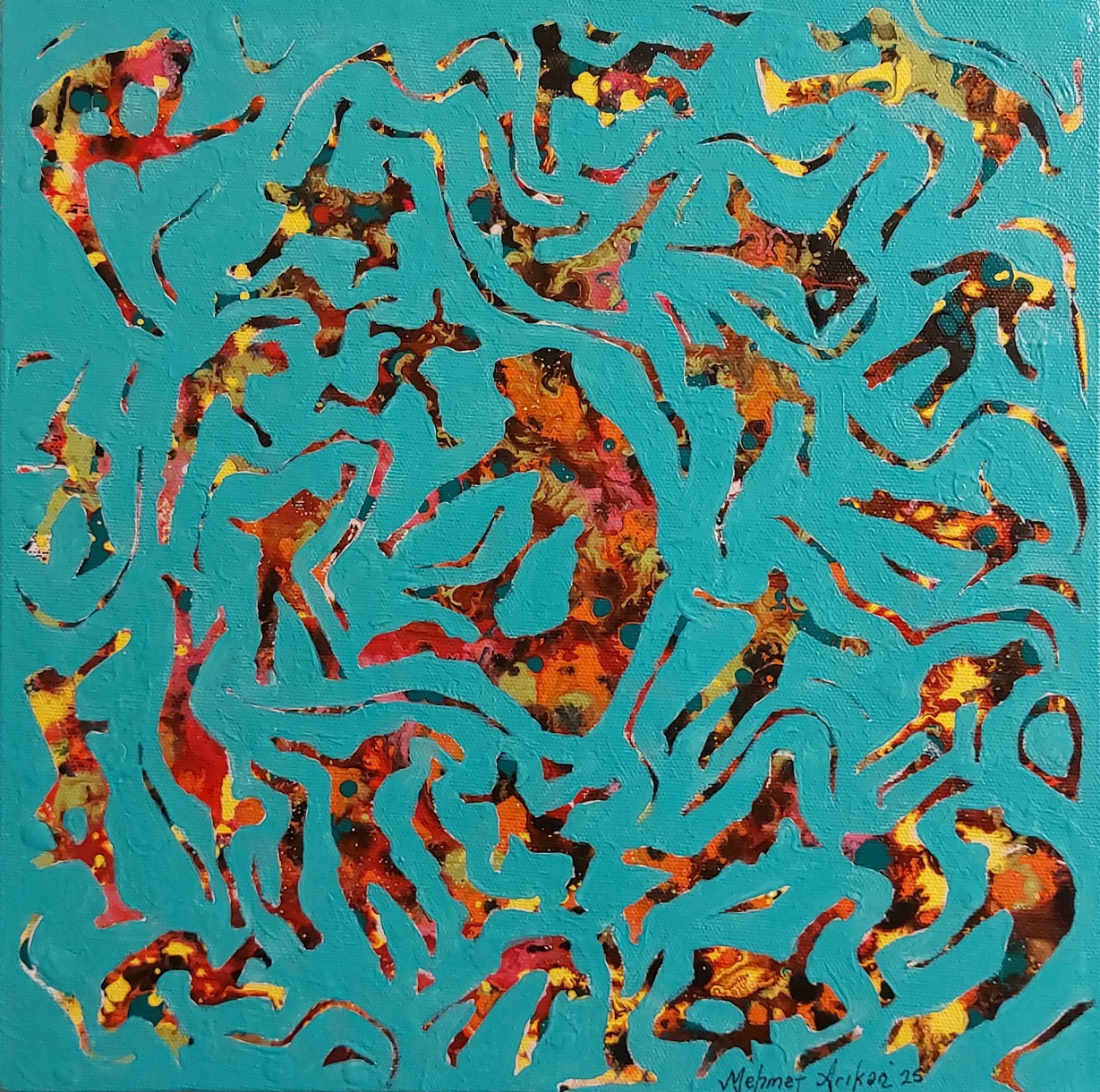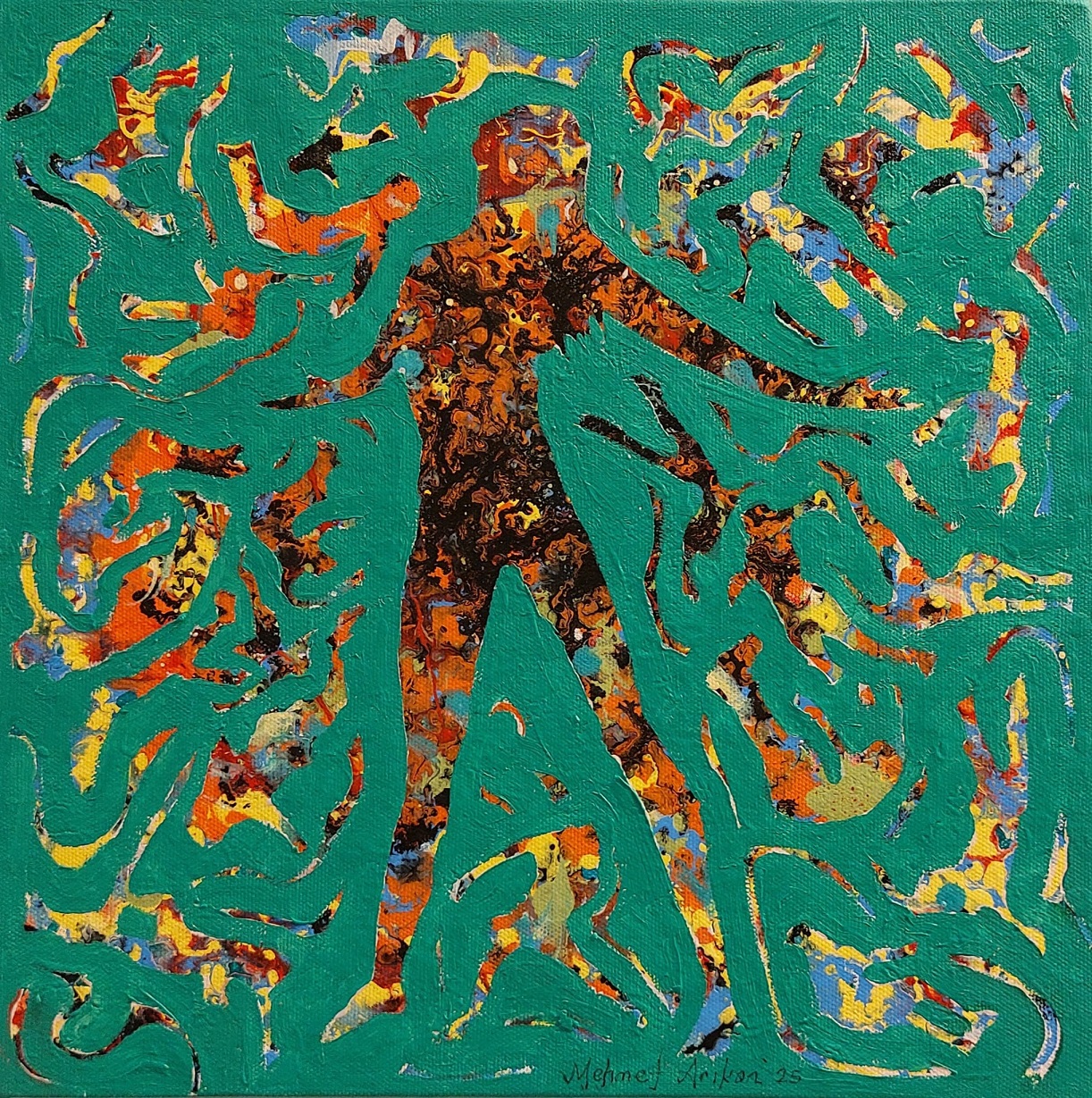 Değerli sanatçı Mehmet Arıkan’ı Ankaralı sanatseverlerle buluşturan Krişna’daki bu sergi yine sanatçısının hem teknik ve hem de dünya görüşü açısından üst düzey, görülmesi gereken bir sanat ve felsefe şenliği olarak değerlendiriliyor. Boşluğu temsil eden çeşitli renklerin üzerindeki figürlerin; aslında hepimiz gibi, aynı ama ayrım içerisinde, birlikten habersiz dans ettikleri mesajı veriliyor.