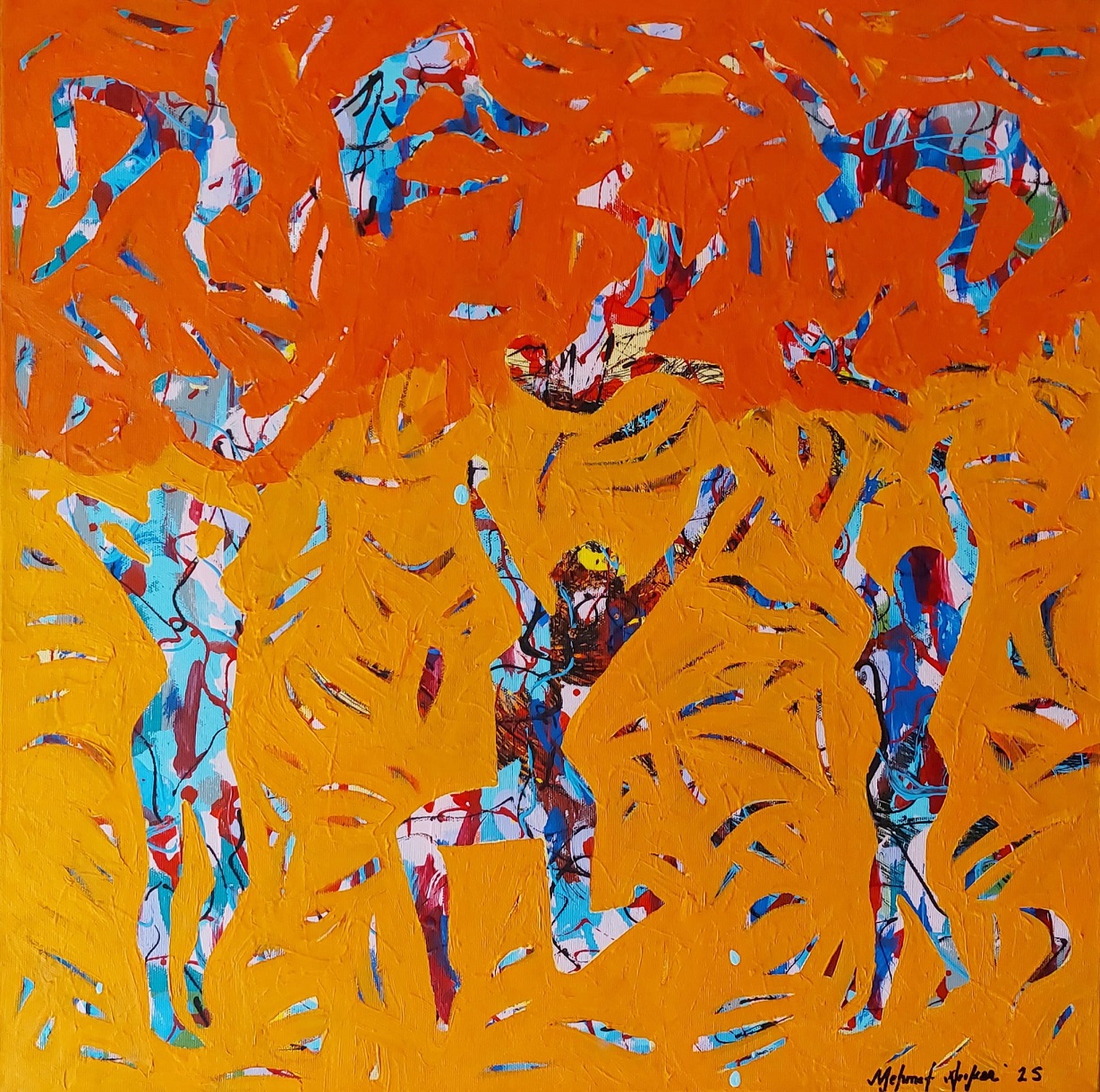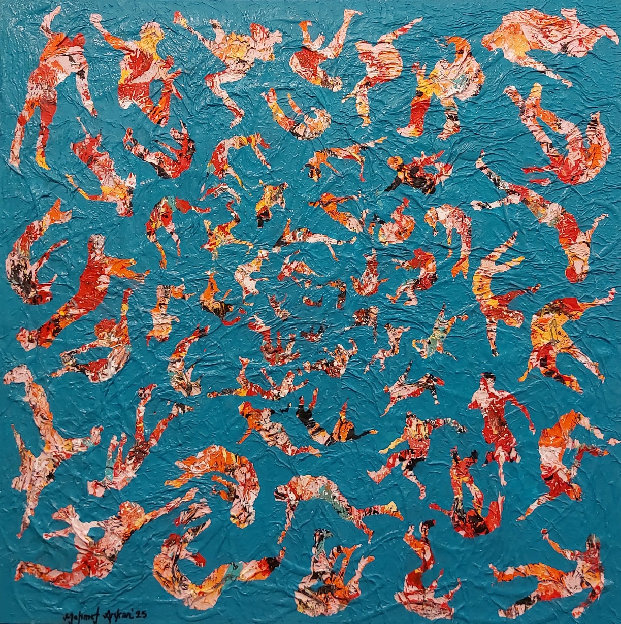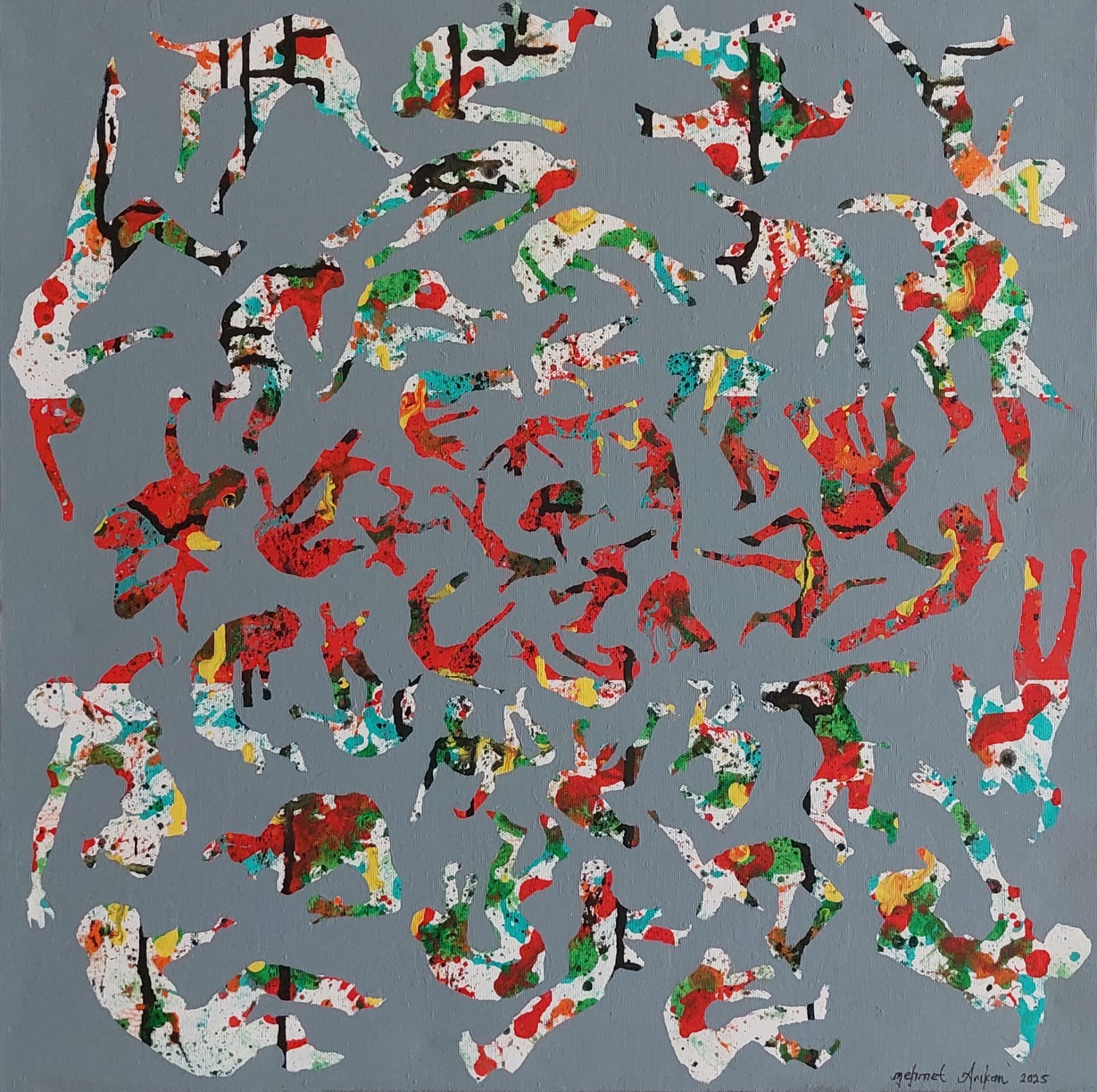 Uçuşan kalabalıklar her toplumda olduğu gibi eşitlik, özgürlük, bağımsızlık, adalet gibi farklı talepleriyle bir araya gelmiş bazen de yayılan korku izlenme ve özgürlüklerin kısıtlanması noktasında bir kopma ve ayrışma yaşanmasına neden olmuştur… Kalabalıkları farklı nedenlerle birbirinden ayıran etkenler dışında, güç olgusu, ekonominin insanlar üzerinde yarattığı etki insanların kalabalıklar içinde yalnızlaşmasına etken olmuştur. Resimlerinde parçalanmışlığın, izolasyonun görmezden gelmenin ve kayıtsızlığın şeklini aldığı bir dünyada, bazen mağduru bazen sorumlusu durumunda bir iç hesaplaşma ifade edilmiştir.