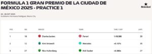 Ferrari sürücüsü Charles Leclerc, Mexico City Grand Prix’si birinci antrenman seansında en hızlı sürücü olurken, Kimi Antonelli ve Nico Hulkenberg’in önündeydi.