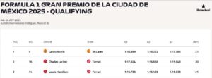 Meksika Grand Prix’si sıralama turlarında Lando Norris, Ferrari ikilisi Charles Leclerc ve Lewis Hamilton’ın önünde liderliği ele geçirirken, McLaren takım arkadaşı Oscar Piastri ise seansı sekizinci sırada tamamladı.