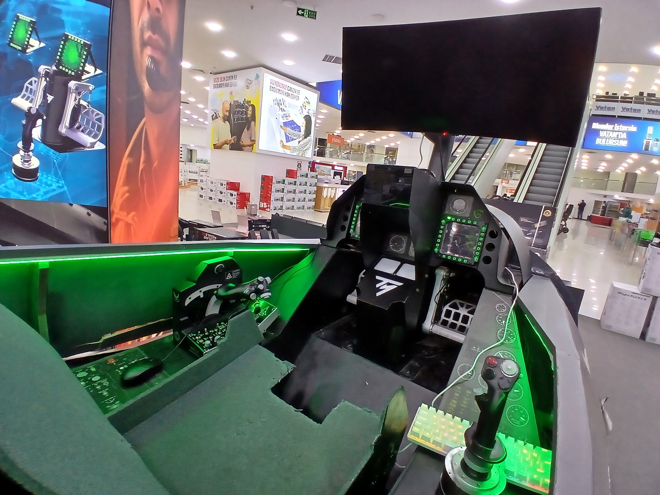 Ankara, Söğütözü’ndeki bir teknoloji marketi, müşterilerine bir F-16 savaş uçağının kokpitinde uçuş simülasyonu deneyimleme fırsatı sunuyor.