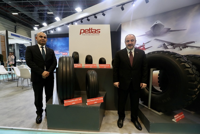 Türkiye’de lastik sektöründe birçok ilki teknoloji transferi olmadan, kendi potansiyeliyle üretmeyi başaran Petlas, askeri hava ve kara araçları için ürettiği lastikleri SAHA EXPO, Savunma, Havacılık ve Uzay Sanayi Fuarı’nda tanıttı. 390 yabancı firma, 567 yerli firmanın İstanbul Fuar Merkezi’nde ağırlandığı Uluslararası savunma sanayisi ihtisas fuarında Petlas, 2. salonda 2C-07 numaralı stantta; askeri sanayiye yönelik özel proje olarak geliştirdiği RM900 Plus, RM910, Explero PT425, Explero PT451 lastikleri ile Bayraktar Akıncı, Bayraktar TB2, TAİ Hürkuş ve Milli Muharip Uçağı lastiklerini sergiledi. Fuara katılan Sanayi ve Teknoloji Bakanı Mustafa Varank da Petlas stantında ürünleri inceleyerek Petlas Kamu Satış ve İhale Müdürü Ümit Berber’den Milli Muharip Uçak, SİHA lastiklerine dair bilgiler aldı. Askeri kara ve hava araçlarının yerlileştirilmesine katkılarından dolayı Petlas’a teşekkür etti.