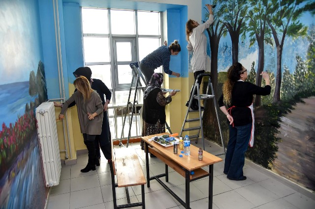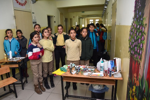 Sosyal sorumluluk projelerini hemen hemen her platforma taşıyan Altındağlı kadınlar, önemli bir davranışa daha imza attı. Altındağlı kadınlar, öğrencilere resim sevgisini aşılamak adına Gültepe Ortaokulu’nun koridorlarını boyadı. 2 günlük özverili bir çalışma sonucunda okul koridorları rengârenk oldu.