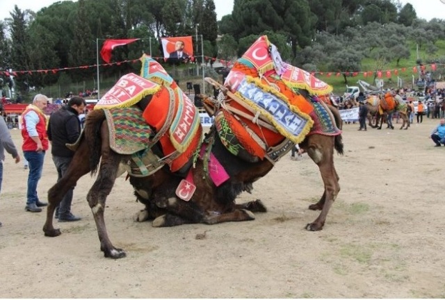 Aydın’da Germencik Belediyesi tarafından Ortaklar Mahallesinde düzenlenen sezonun son deve güreşi büyük ilgiyle izlendi.
