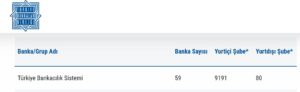 8 Ekim 2025 tarihi itibariyle Türkiye Bankacılık Sistemi’ndeki banka sayısının 59 olduğu görülüyor. (kaynak:ankaranethaber.com)