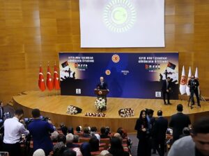 Gazze soykırımı üzerinden iki yıl geçmesine rağmen hala saldırıların sürdüğünü dile getiren Kurtulmuş, en son Küresel Sumud Filosu’na Akdeniz’in uluslararası sularında İsrail’in ağır silahlı askerlerle müdahale ettiğini ve 40’ı aşkın ülkeden yüzlerce insanı gayriinsani şartlarda gözaltına alarak İsrail’e götürdüğünü anlattı.