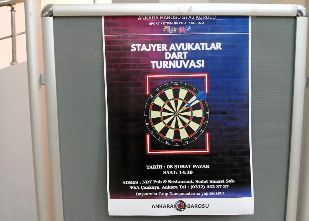 Ankara Barosu tarafından düzenlenen Stajyer Avukatlar Dart Turnuvası 8 Şubat Pazar günü Ankara’da gerçekleştirilecek.
