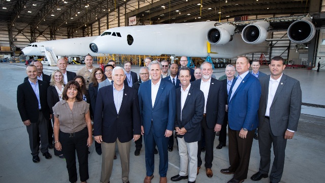ABD Başkan Yardımcısı Mike Pence, dev uçak Stratolaunch’u Mojave’de ziyaret etti.