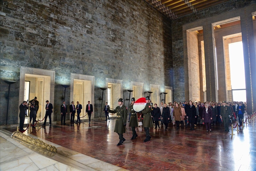 Sayın Şule Akar’ın mozoleye çelenk bırakmasının ardından heyet saygı duruşunda bulundu.