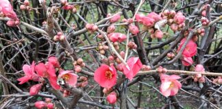 Bahar provası yapan Japon ayvası çiçek açtı