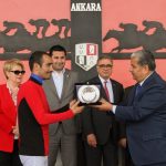 Safkanın antrenörü Muharrem Can’a ve CANKARDEŞLER isimli safkanın jokeyi Selim Kaya’ya da plaketlerini de TBMM Genel Sekreter Yardımcısı Erbay Kücet verdi.