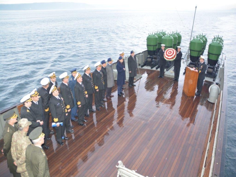 102 yıl önce gerçekleştirilen tarihi mayın hattı üzerine çelenk bırakılan törende TCG NUSRET gemisinde Çanakkale Deniz Savaşları hakkında canlı anlatımlar ve video sunumları ile tarihe bir yolculuk yapıldı.