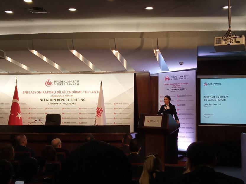 Türkiye Cumhuriyet Merkez Bankası (TCMB) Başkanı Hafize Gaye Erkan, Enflasyon Raporu 2023-IV’ün tanıtımı amacıyla Ankara’da bilgilendirme toplantısı düzenledi.