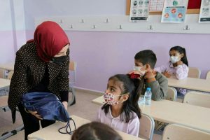 Öğrencilerle bir araya gelen misafirler, çekilen hatıra fotoğrafından sonra okuldan ayrıldı.