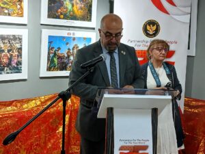 Katılımcılara hitabeden Endonezya’nın Ankara Büyükelçisi Achmad Rızal Purnama, “Bugün burada sizlerle olmaktan büyük onur duyuyorum. Bugün Endonezya’nın güzelliğini 68 muhteşem fotoğrafla gözler önüne sereceğiz. Farklılıkların kimi zaman korkuyla karşılandığı bir dünyada biz çeşitliliği kucaklıyoruz. Sanat evrensel bir dildir ve insanları birbirine yakınlaştırmada çok önemli bir rol oynar. Sınırları aşar, kalpleri birleştirir, anlamlı diyalog ve anlayışı güçlendirir. Bu yüzden sanatın gücünü asla küçümsememeliyiz. Sanat sayesinde ülkelerimiz daha adil ve daha güzel bir dünya inşa edebilir. Bu etkinlik sadece Endonezya’nın güzelliğini kutlamak için değil aynı zamanda Endonezya ile Türkiye arasındaki güçlü ve giderek büyüyen dostluğun bir simgesidir.” şeklinde konuştu.
