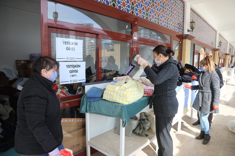 Yeniden elden geçirilen ve kullanılabilir durumdaki kıyafetler depremzede vatandaşlara ulaştırılıyor.