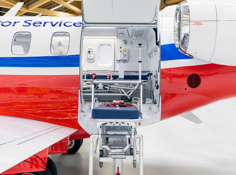 Hava ambulansı olarak dizayn edilen 105 imalat seri nolu jetin iç mekanı, uçak medikal iç mekanlarında uzmanlaşmış İsviçre şirketi Aerolite AG ile ortaklaşa yürütülen ek bir sertifikasyon prosedürüyle tamamlandı.
