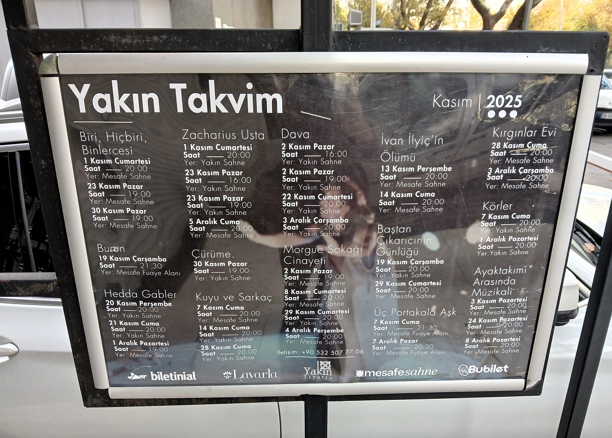 Sahne kullanımına göre değişebilen 53 kişilik seyirci kapasitesi ve sahne kullanımına göre artırılabilen 30,25 m2 gösterim alanına sahip olan Yakın Tiyatro, profesyonel ışık ve ses sistemiyle donatılmış sahnesiyle Kasım Ayında şu oyunlara ev sahipliği yapacak: